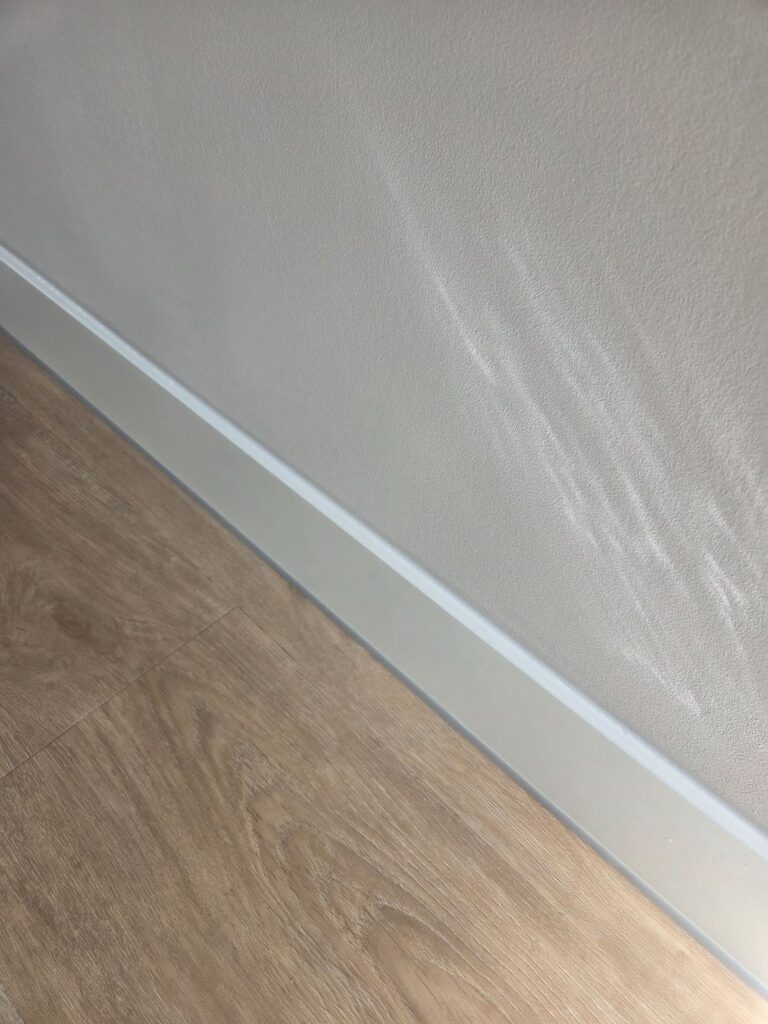 Na het plakken wil je de bovenkant van de plint mooi laten aansluiten op de muur. Afkitten is daarvoor de standaard oplossing, maar het pakt niet altijd goed uit.